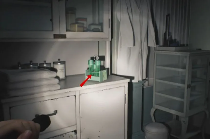 In the same Blood Lab room, pick up the White Reversible Blood Specimen. Use it on the Analyzer to unlock crafting recipes for Steroids and the Stabilizer, both of which are valuable upgrades for survival and combat.