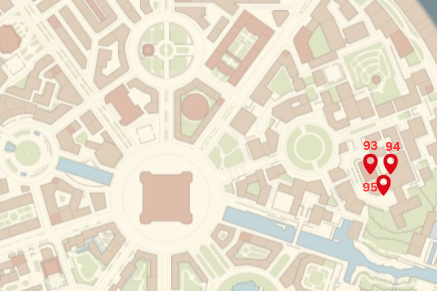 Screws 93 to 95 are all around City Hall: climb the scaffolding south of it, then glide north or east to reach nearby rooftops where each screw is hidden.