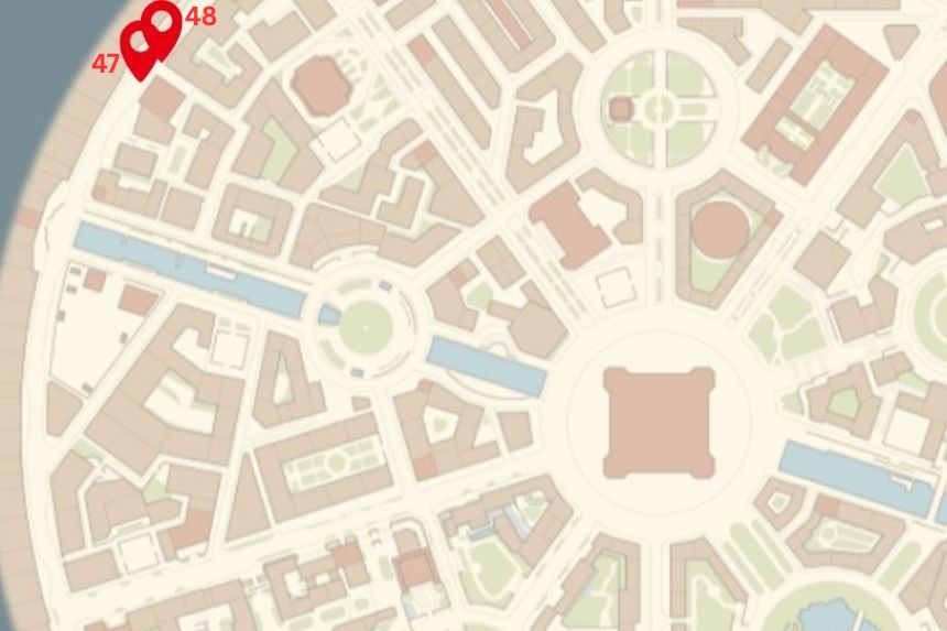 Use the elevator to reach the rooftop of the building here. The Colorful Screw is placed right at the top, so you can’t miss it once you step out.