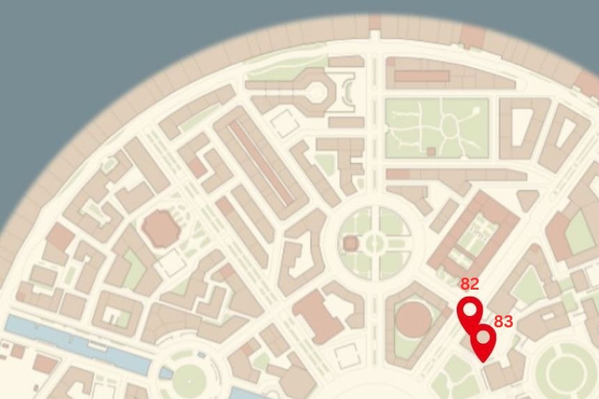 Screws 82 and 83 are both in Jaune Sector 3; climb the scaffolding to the rooftop edge for one, and to the very top for the other.