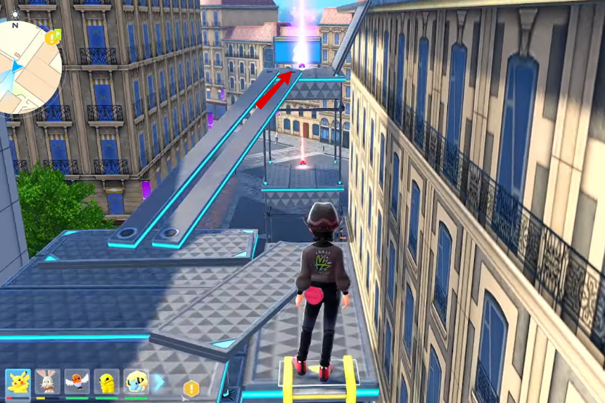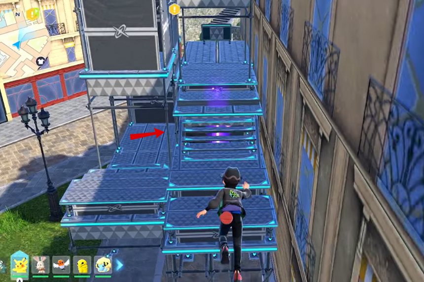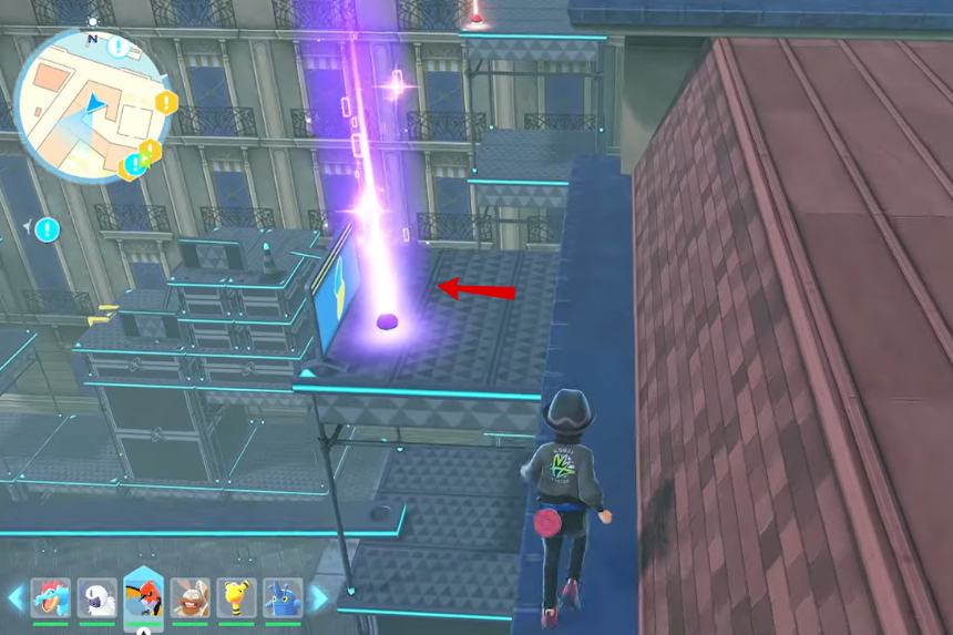 Climb the scaffolding south of Lumiose City Hall, then move north to reach the rooftop closest to the building. From there, use your Roto Glide to land safely on the city hall’s roof and collect the screw.