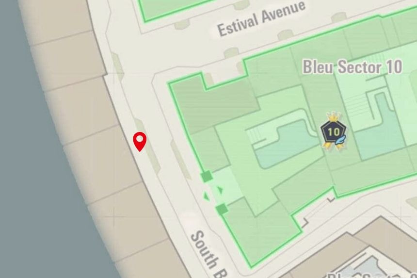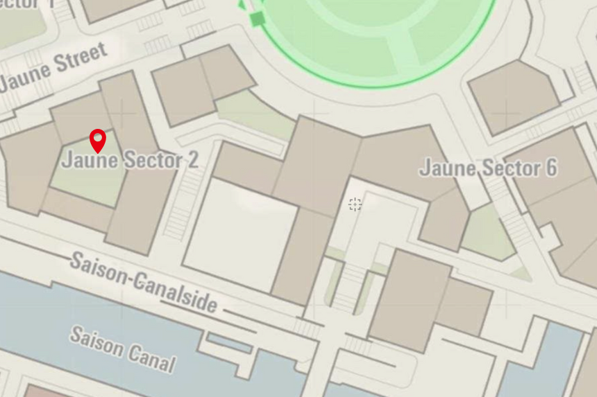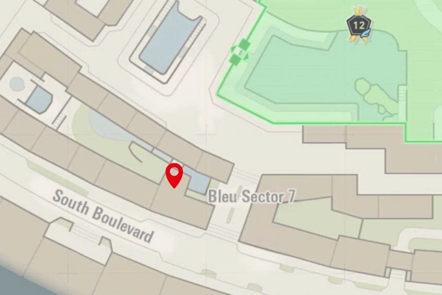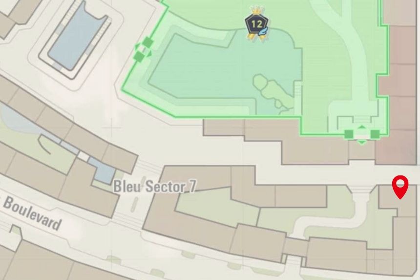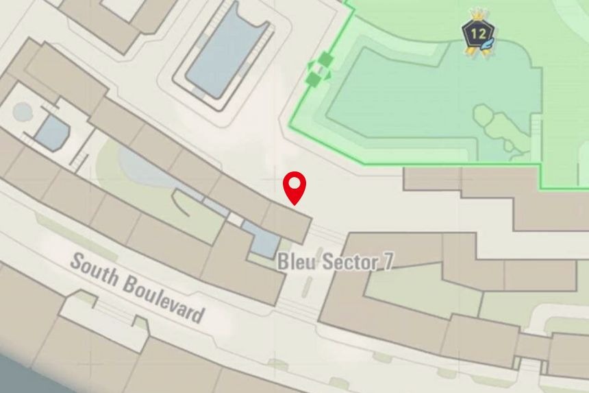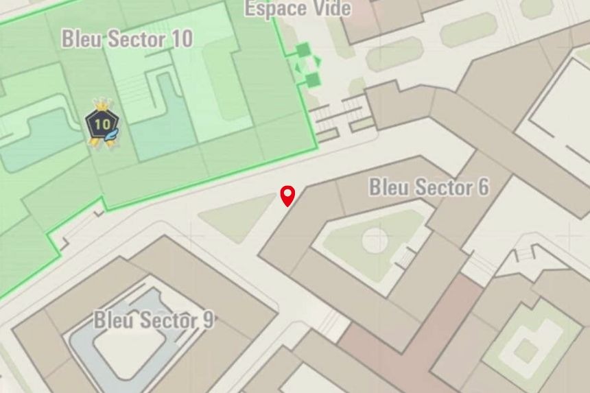 This one’s located in Bleu Sector 7, right near the Nouveau Café. Climb to the top of the nearby scaffolding to collect it.