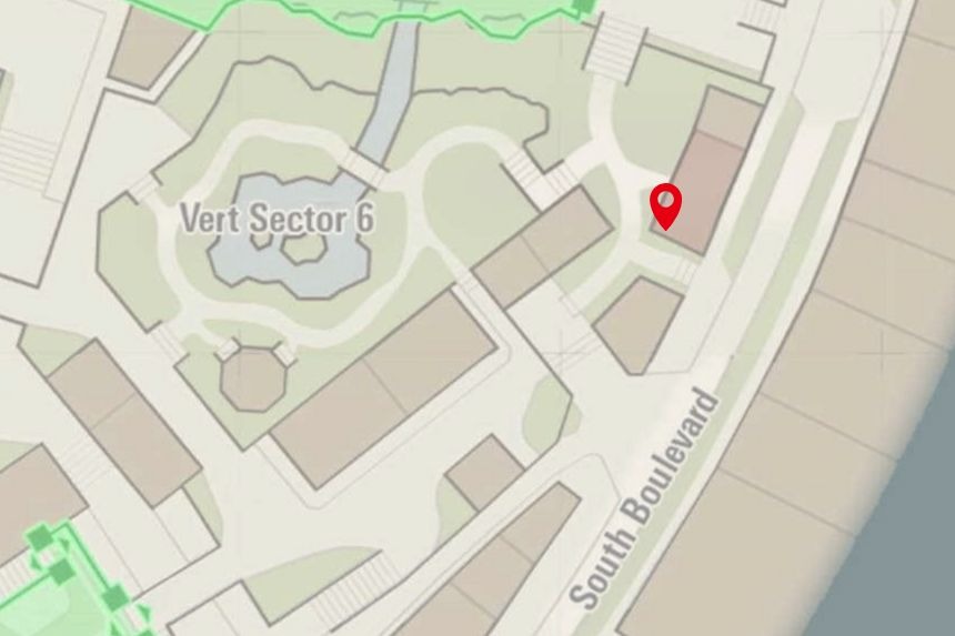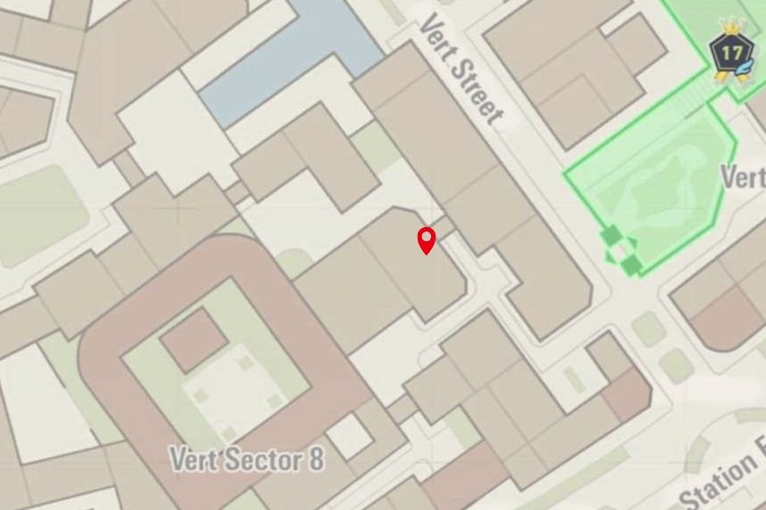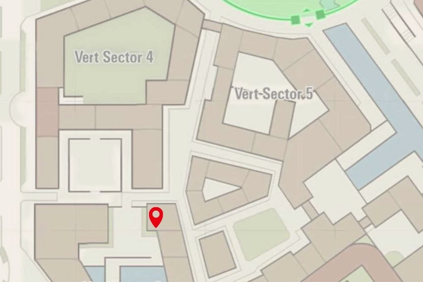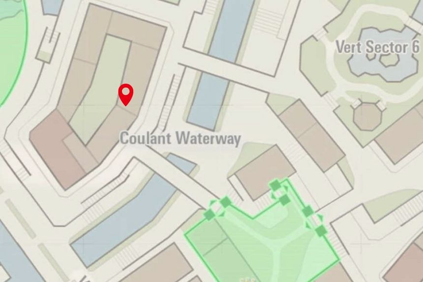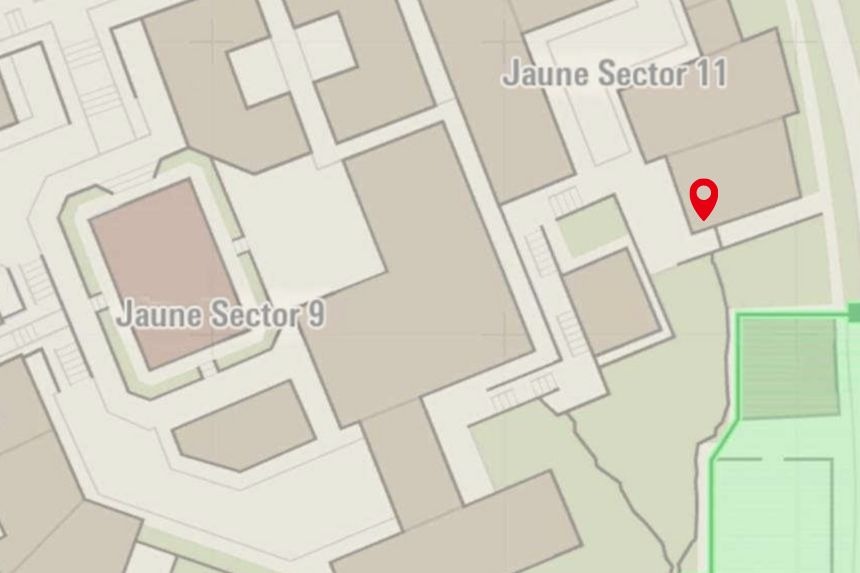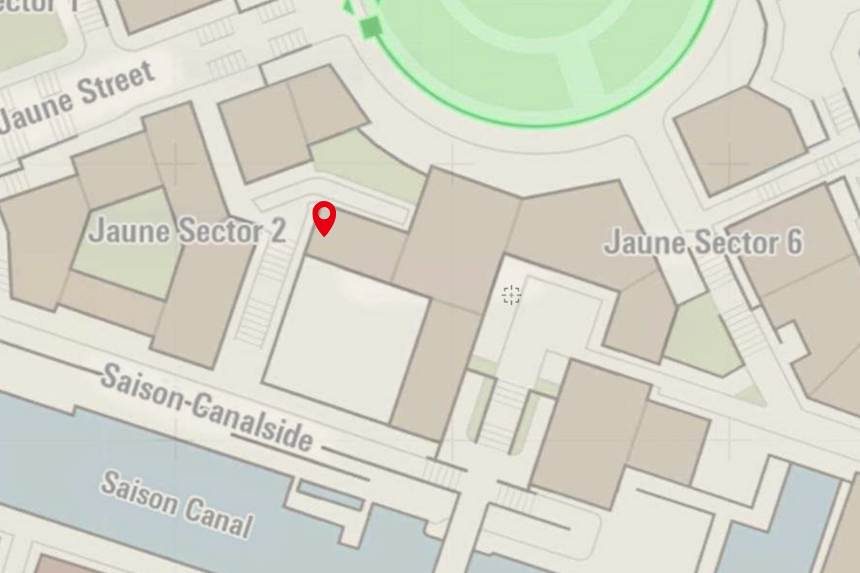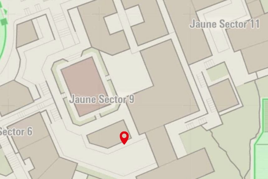 This one’s located in Bleu Sector 7, right near the Nouveau Café. Climb to the top of the nearby scaffolding to collect it.