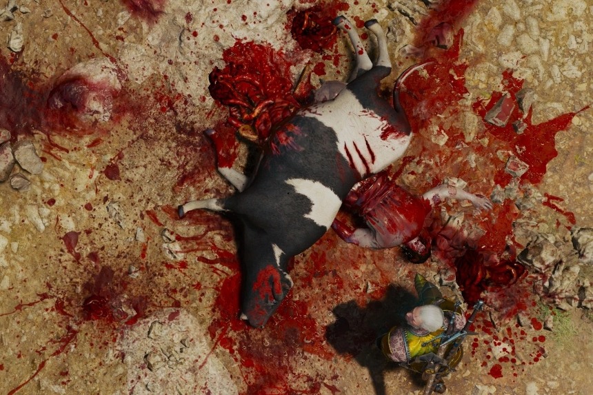 Fyresdal Notice Board. Vagn reports victims. Examine dead cow and disemboweled dog with Witcher Senses. Lead a sheep to the forktail’s nest to summon it. Use Aard and oils to slay it. Return to Vagn.