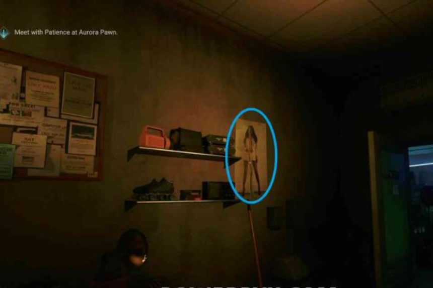 The third Cross is found inside Aurora’s Treasures, one of the earliest accessible locations. You’ll come here often for side quests, and this is also where Patience resides. Head down the hallway leading to her room and look for a poster of a woman, the Cross is protruding from it.
