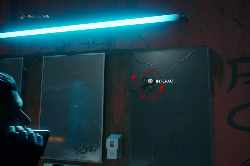The seventh Cross appears in the auto repair shop, which opens up during a specific story mission. Once you’ve gained access, return later if needed; the area remains open. Inside, go to the back right room of the workshop and inspect the toolbox mounted on the wall. You’ll find the Cross among the tools.