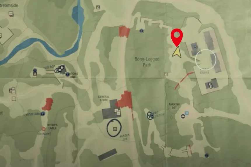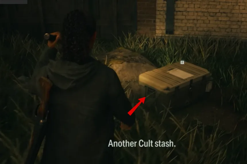 From Streamside, go down the path near the river, right below the Private Cabin. After defeating the boss in Chapter 3, you need to head towards the previously flooded areas to find the cult stash.