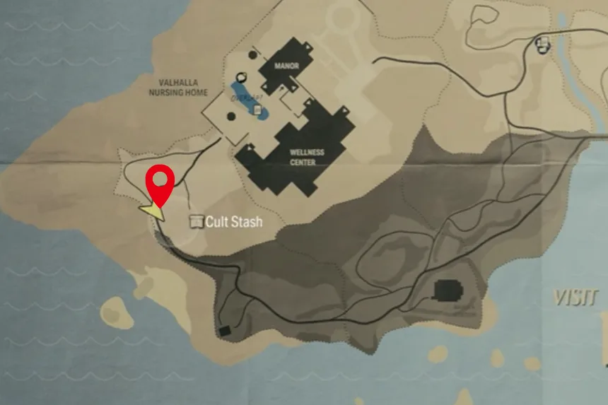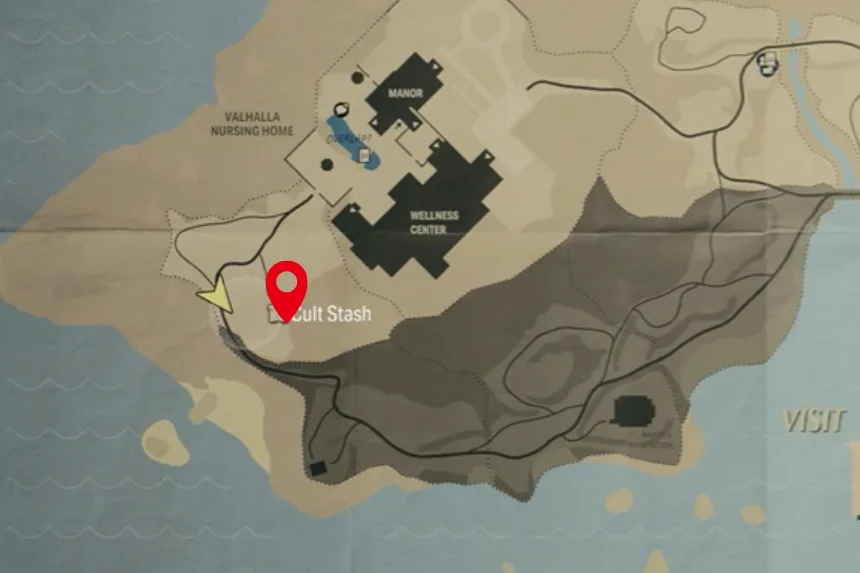 To this cult stash, head towards the south of Valhalla Nursing Home. Follow a small off-path trail to find the cult stash. After defeating the boss in Chapter 9, you will get the bolt cutters.