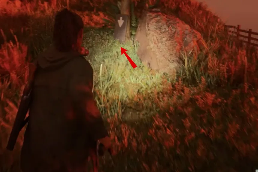 Puzzle Solution: Use your flashlight to follow glowing yellow arrows on trees. They will lead you to a hidden key. Take the key to open the cult stash.