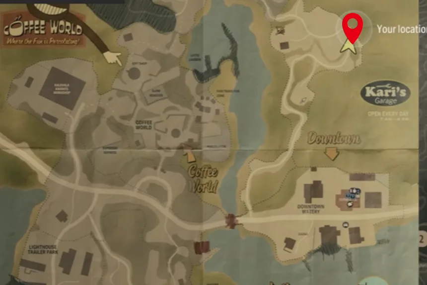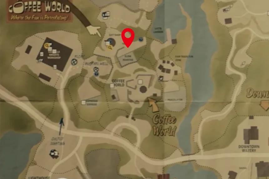 You will find this cult stash right under the Slow Roaster ride in the Coffee World. Head towards the location marked on the map above. Once you reach there, take the stairs to reach the cult stash.