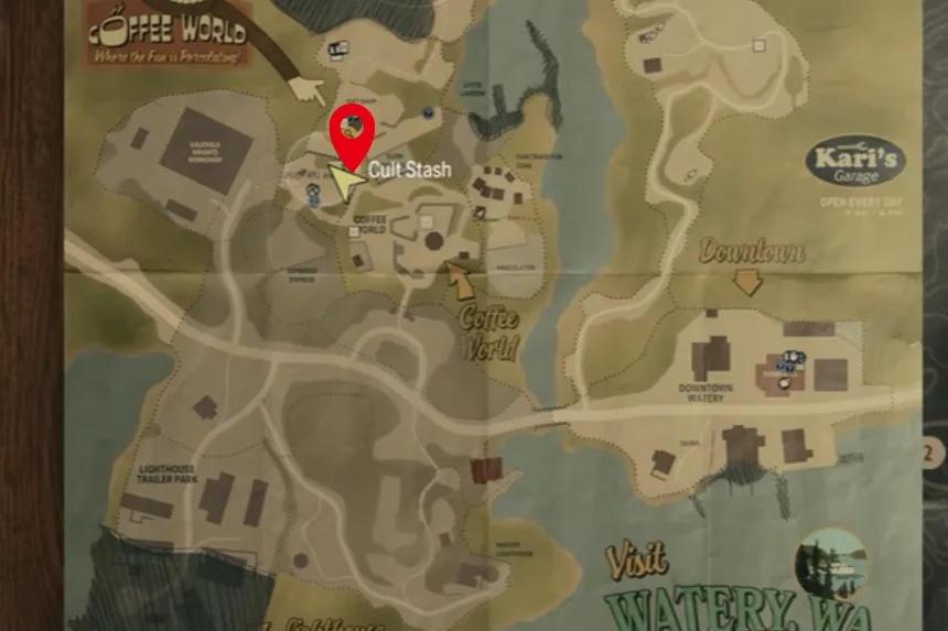 Bright Falls has nine Cult Stashes in total. These stashes have different puzzle types. Some areas only unlock as you progress through the story, so make sure to revisit places later on.
