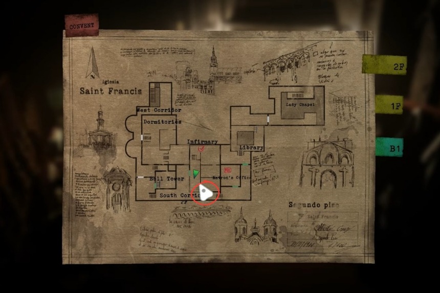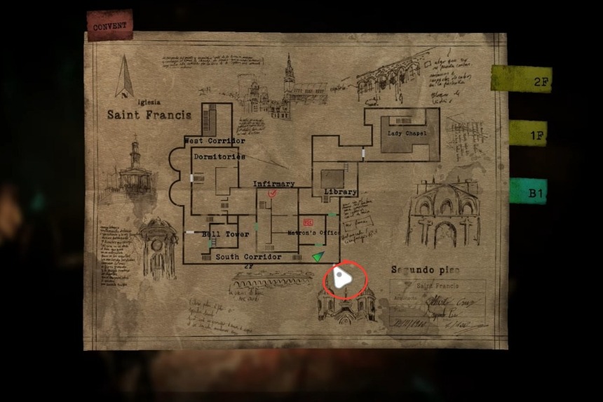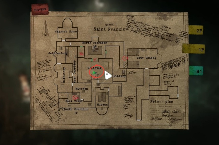 To get Sister Miriam’s Diary 1, you will need to head towards the Convent, and you’ll find it on a table close to the door. This door directly leads you to the southern corridor 1F.