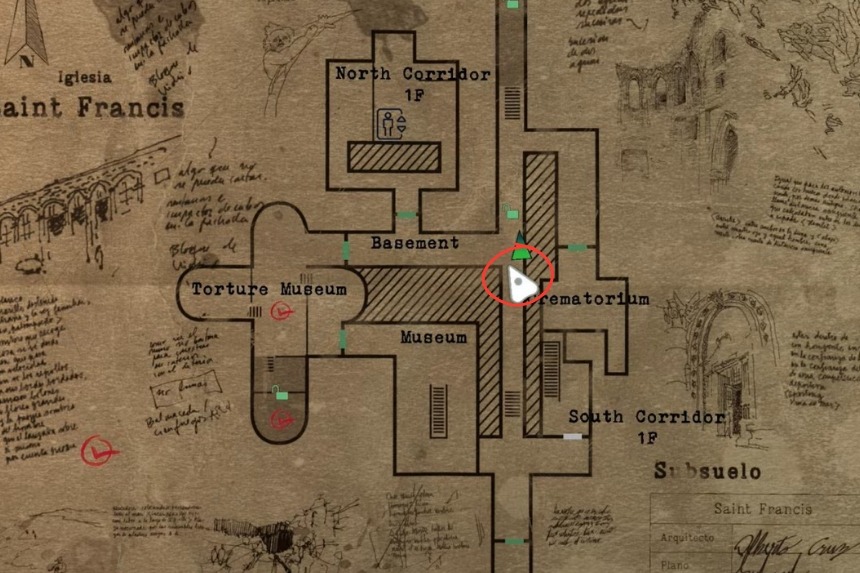 For Mother Lucia’s Diary 6, head right after getting Miguel’s Diary 1, and you’ll come across a door that will lead you to the Sewer Maintenance. Keep going right, and you’ll come across a dead body with several needles pinned on it; beside it will be a table with the diary sitting on top of it.