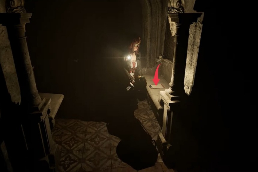 To acquire Sister Angelica’s Notepad 7, you’ll need to go to the Church’s other side. Make your way to the Undercroft, and you’ll find the diary sitting on top of a stone bench placed towards the right side from the entrance.