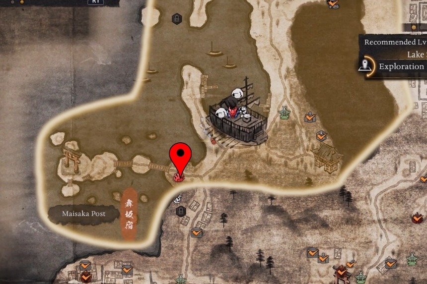 To get to the second Enemy Base of the Shirakawa region, you’ll need to finish the Seeking Spirit Stones side quest in the Shichijo region, and for this you’ll first need to finish the “Beast of the Underworld” battle scroll. Head over to the marked location in the Shichijo region and talk to Thomas Glover.