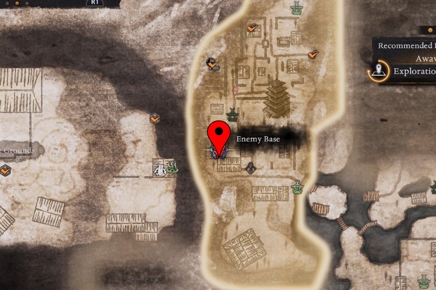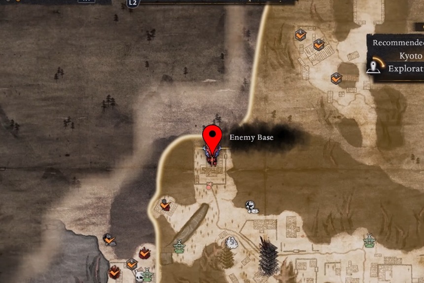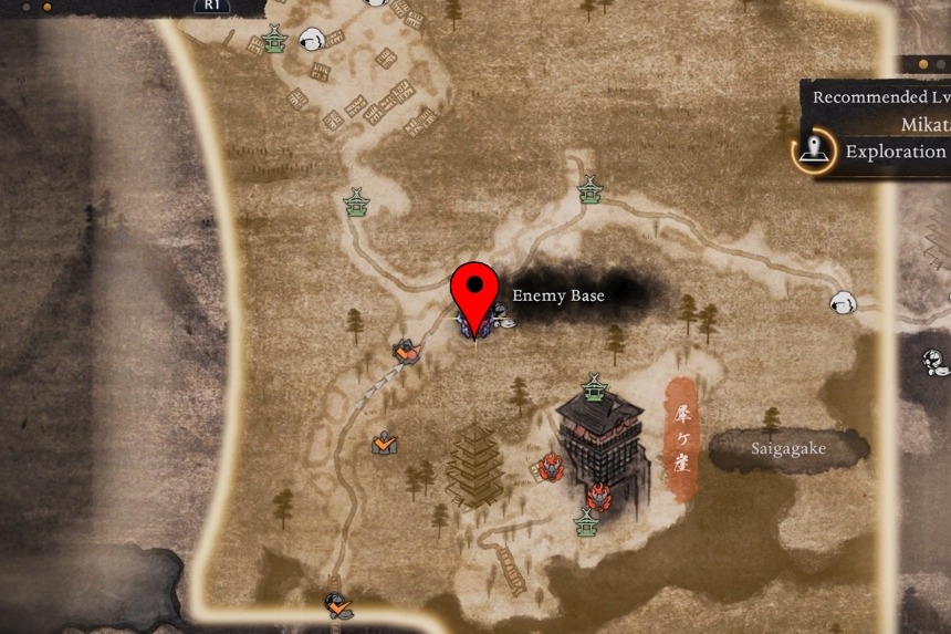 To get the first Enemy Base location in the Shijo region, you’ll need to head over to the area southwest of the Honnoji Temple. You’ll find a well, go right from there, and you’ll come across eight enemies who need to be defeated.