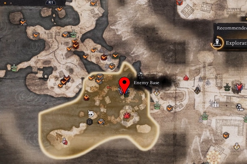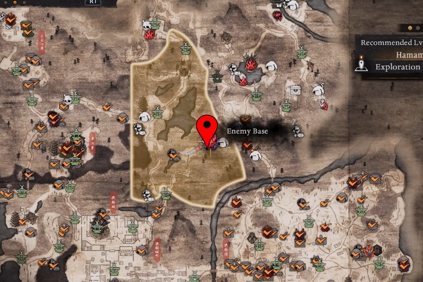 To get to this Enemy Base, you’ll need to travel to the Juji Fortress (East) (Locked). The base is filled with a good amount of resources, and you’ll need to defeat six enemies to capture the base.