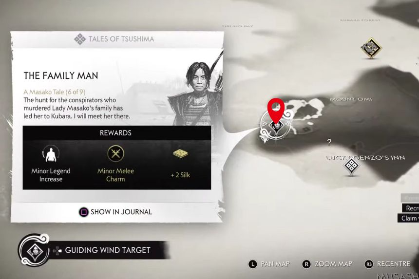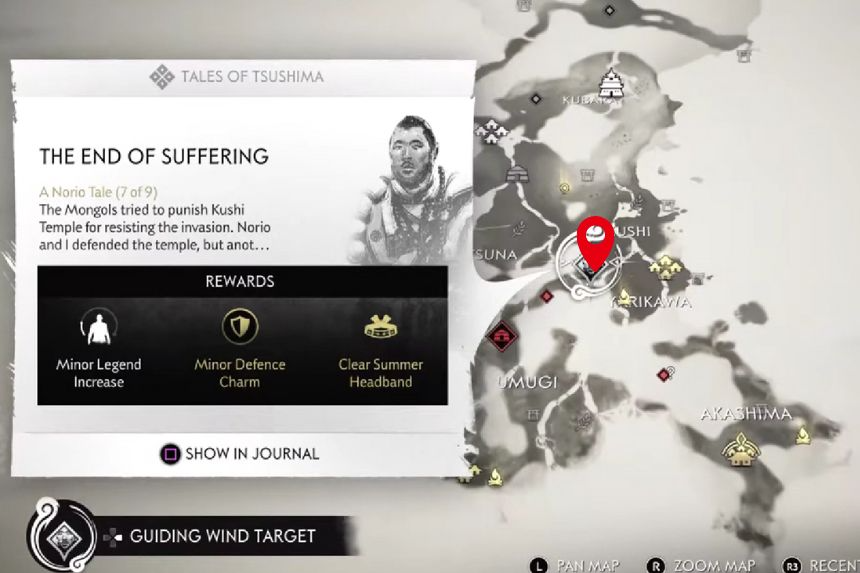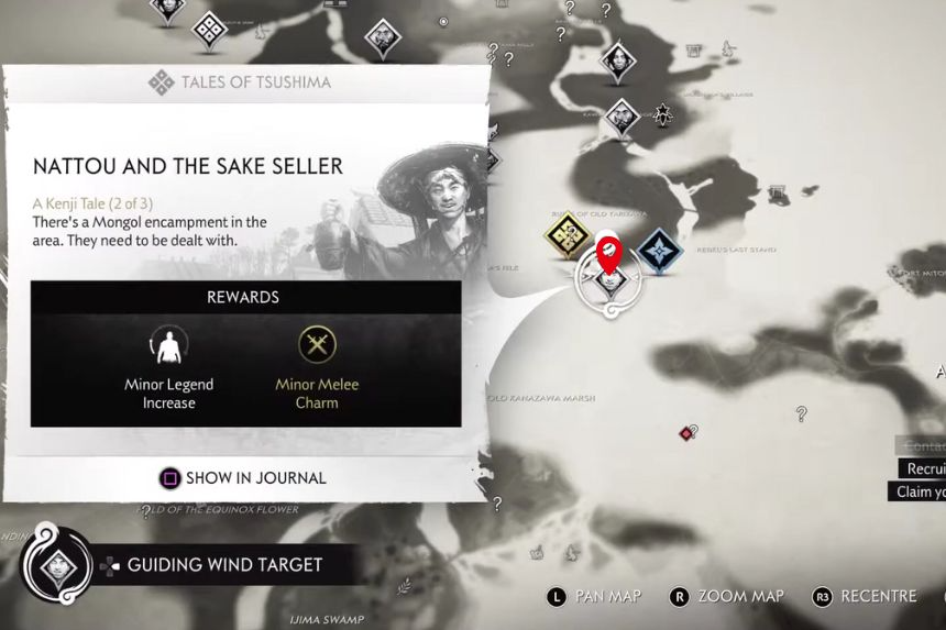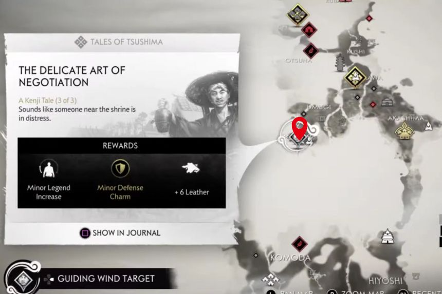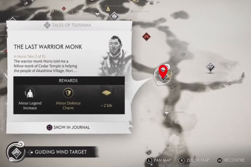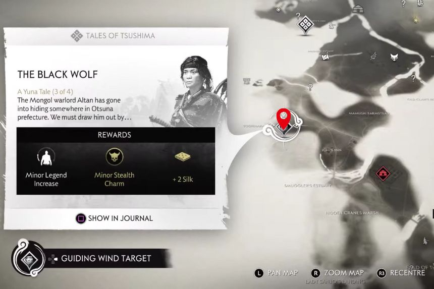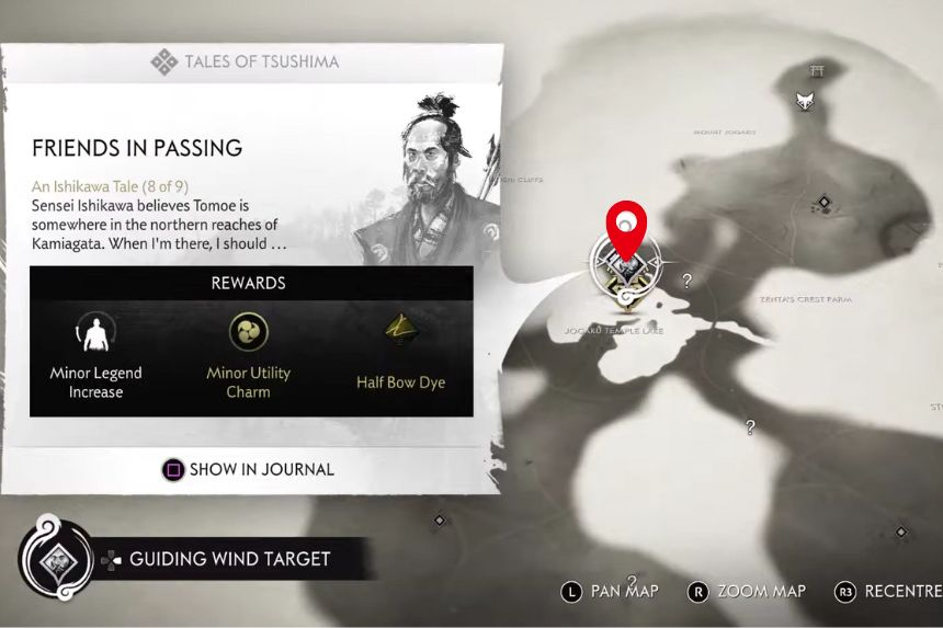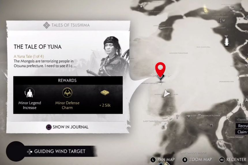An Ishikawa Tale includes 9 side missions that follow Sensei Ishikawa and his guidance throughout Tsushima. You will progress by completing quests in sequence. Rewards for completing these missions include boosts to Legend, various charms (ranged, defense), Linen, Leather, Silk, and unique items such as the Mongol Commander’s Armor or bow dyes.