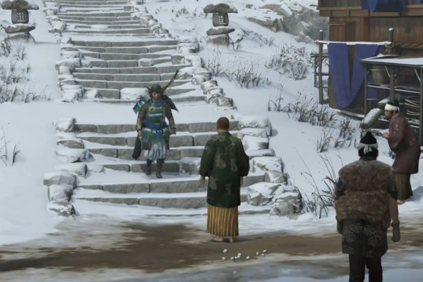 To unlock this mission, you first need to complete the “Ghosts from the Past” main mission and the “Dreams of Conquest” side mission. Once that’s done, head to Urashima’s Village to begin. Your first task is to explore the area and find Ishikawa, who is hiding in a watchtower. Before you can talk to him, you will need to eliminate all the Mongols nearby.