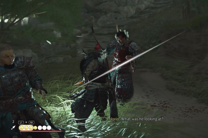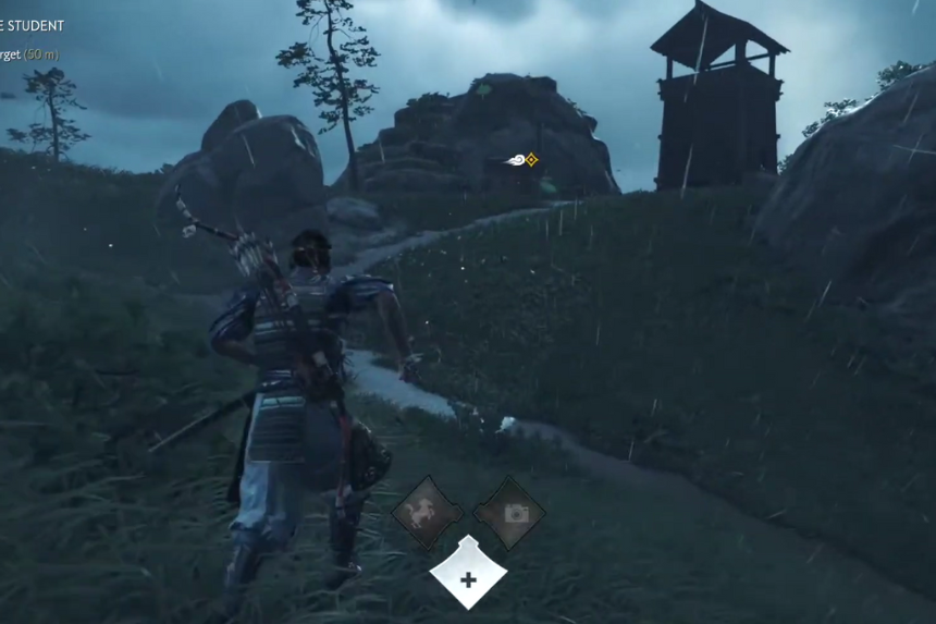 Once the enemies are dealt with, go speak to a nearby man. Just as you start talking, an enemy archer will suddenly interrupt. Quickly track him down and eliminate him before he causes any more trouble. After that, you and Sensei Ishikawa will head to a nearby makeshift camp.