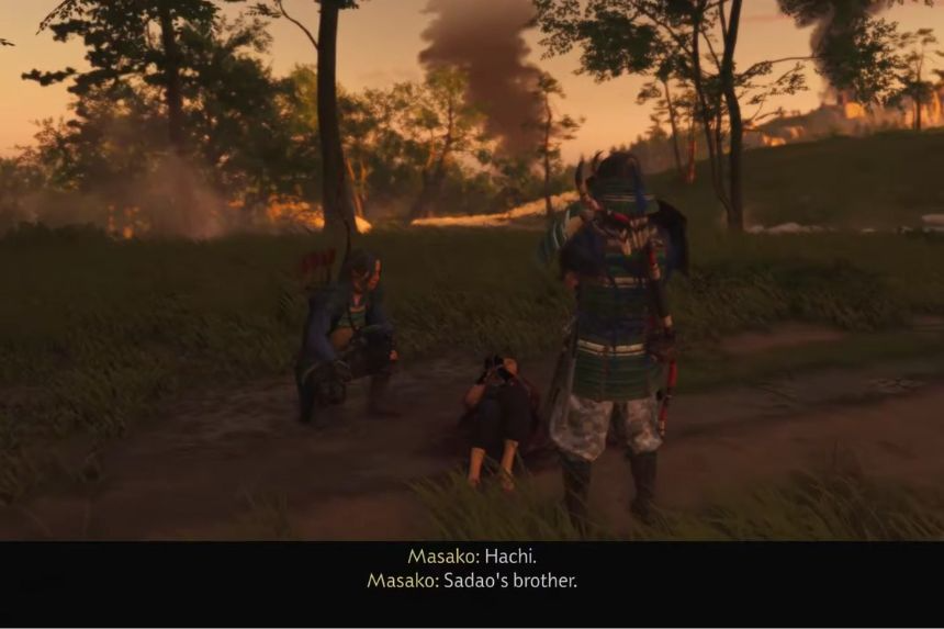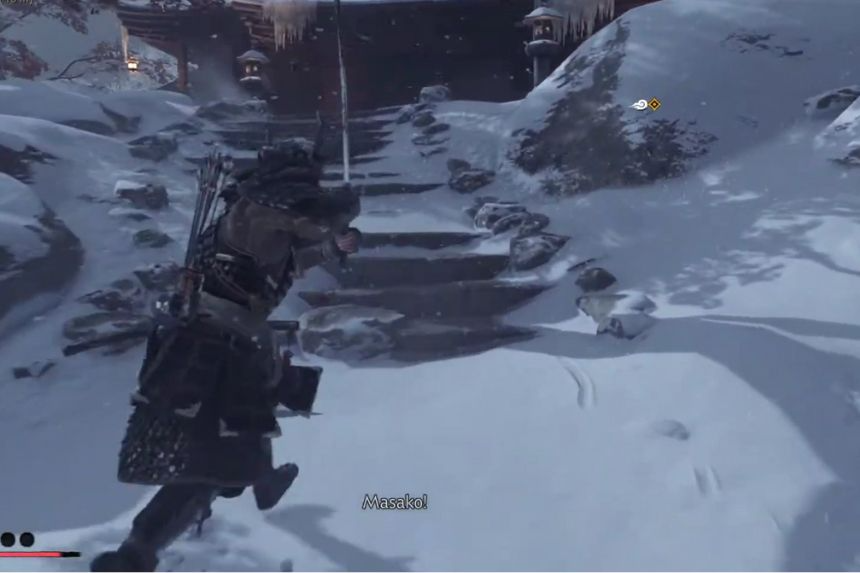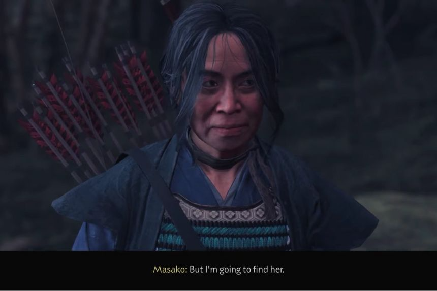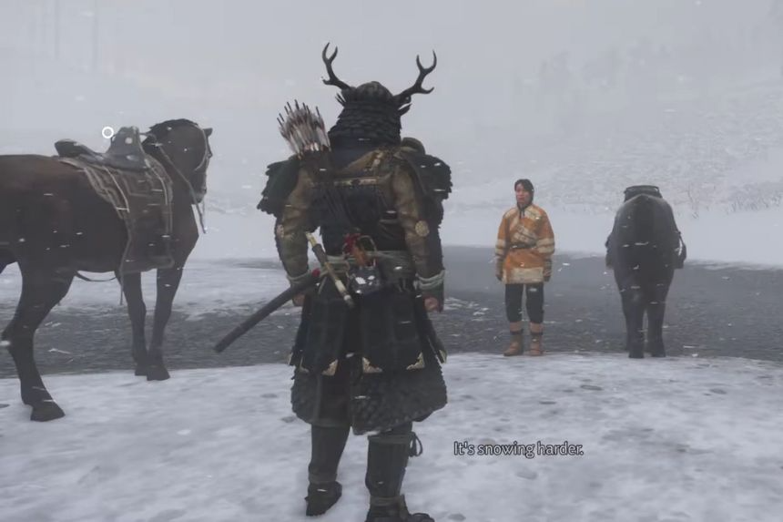 The quest begins with a journey alongside Masako. The path is long, so you can bring your horse, but keep in mind that Masako will always run on foot beside you.