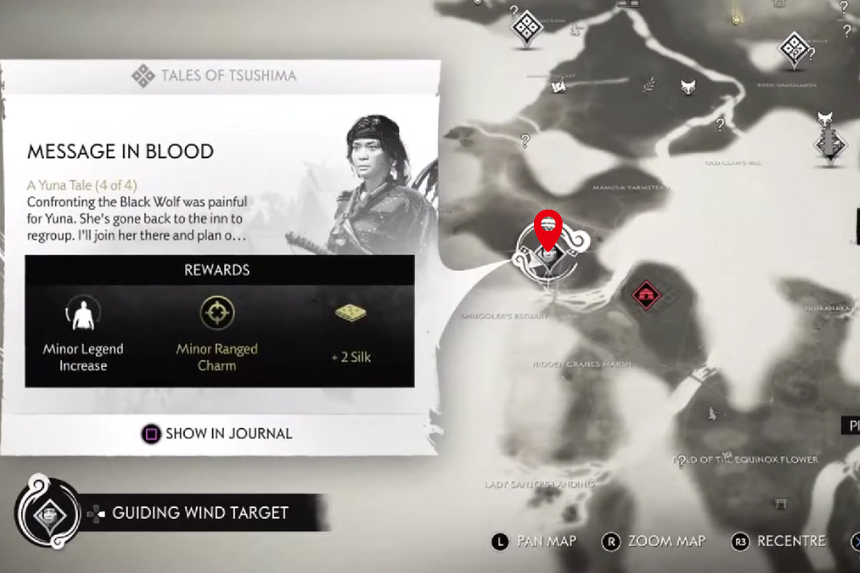 Finally, return to Ishikawa to complete the mission. As a reward, you will get a small increase in your Legend, a lesser ranged charm, and 2 pieces of Silk.