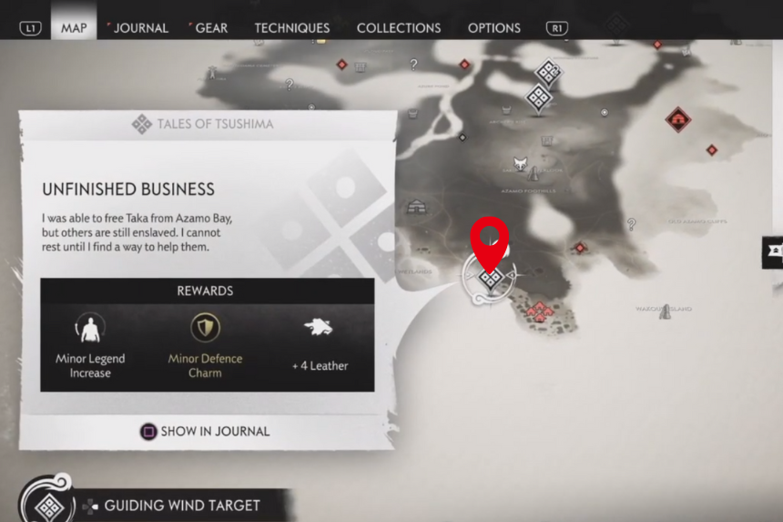The side quests in Ghost of Tsushima expand the story, let you explore the world, and provide rewards such as unique equipment, Legend points, and crafting materials. You don’t need to complete the side quests to finish the main story, but they offer valuable bonuses and experiences. You can unlock new side quests in several ways: by discovering quest markers while exploring, by progressing through the main story, or by talking to NPCs with a conversation icon.