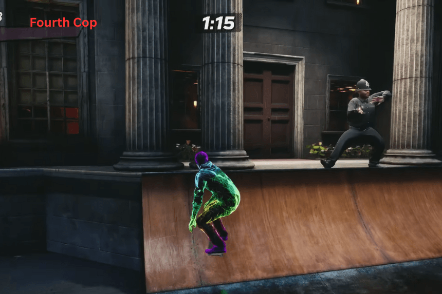 You’ll spot the first officer right in front of you as soon as the level starts. Turn right and go under the bridge; you’ll find the second cop near the fence by the water. Next, head up the slope to get on the bridge, then turn right. Follow the road as it curves left, and you’ll run into the third officer. For the final one, head to the higher section of the map where the fountains are, it’s across the road from the bus shelter. The last cop will be teleporting to different places so watch out for him to get his cap.