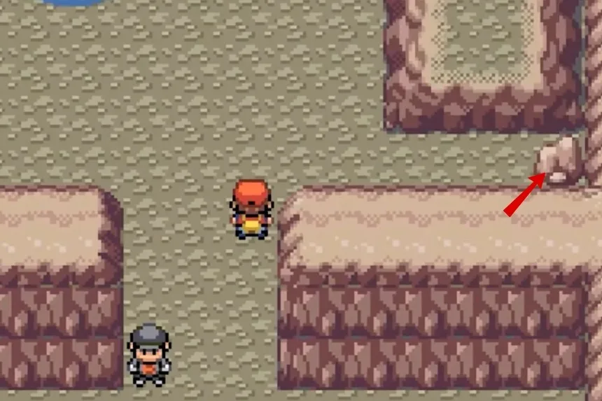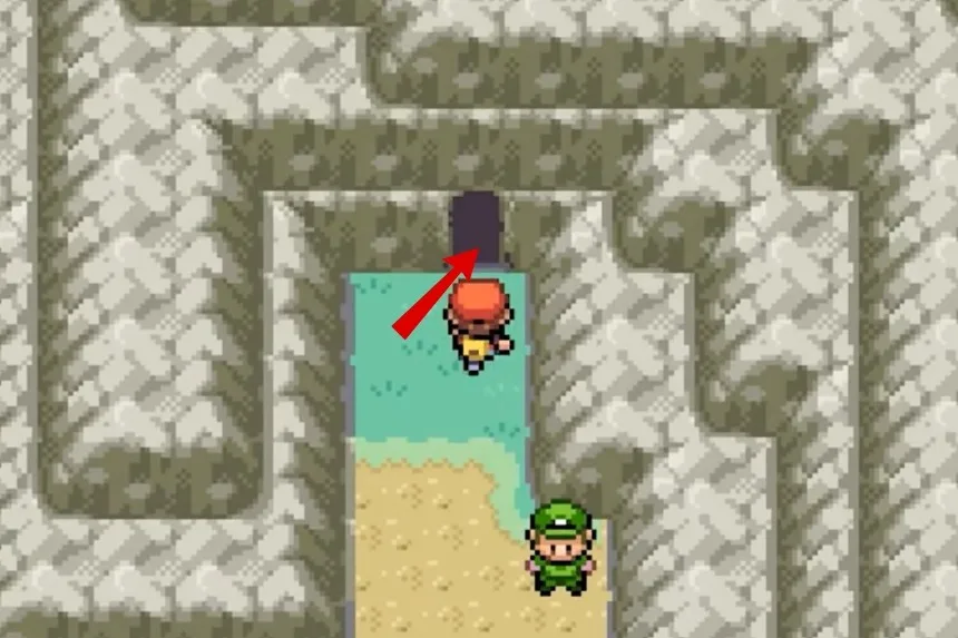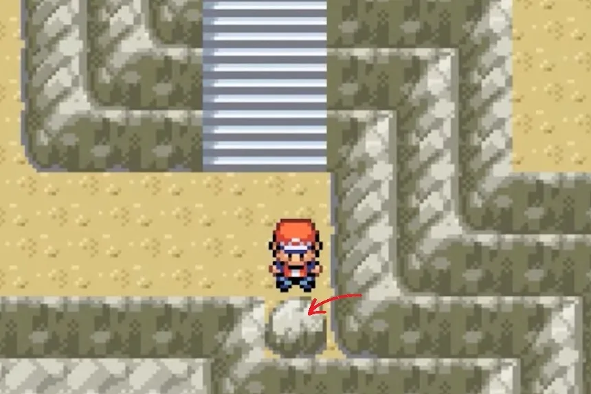At the starting point, you’ll find two rocks on your left. You’ll need to use your strength to push those rocks one by one to clear the blocked path. Once the path is clear, go northwest, and you’ll find a yellow patch between the walls. This is where the Ultra Ball can be found.