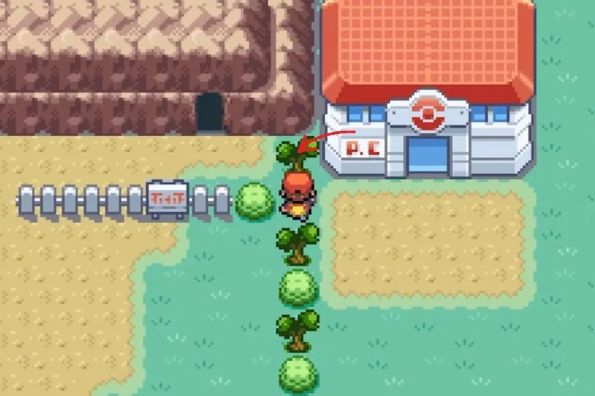 Now, for the Super Potion, you’ll need to go toward the Pokémon Center, where you’ll find several trees lined up. Cut the one at the top, and you’ll get the Super Potion.