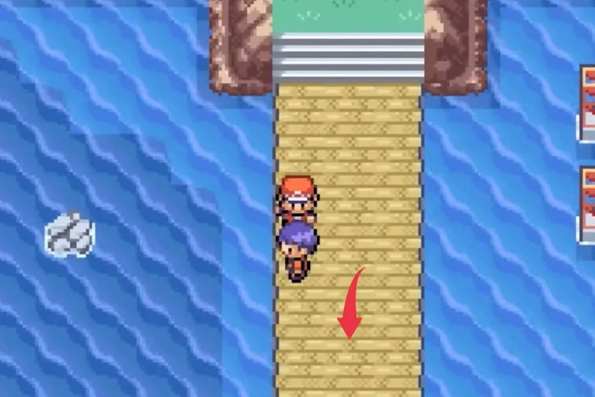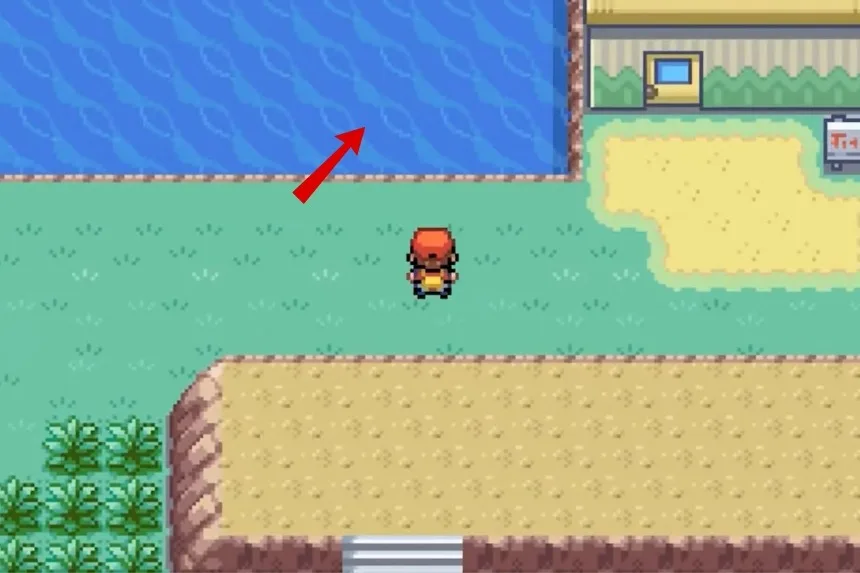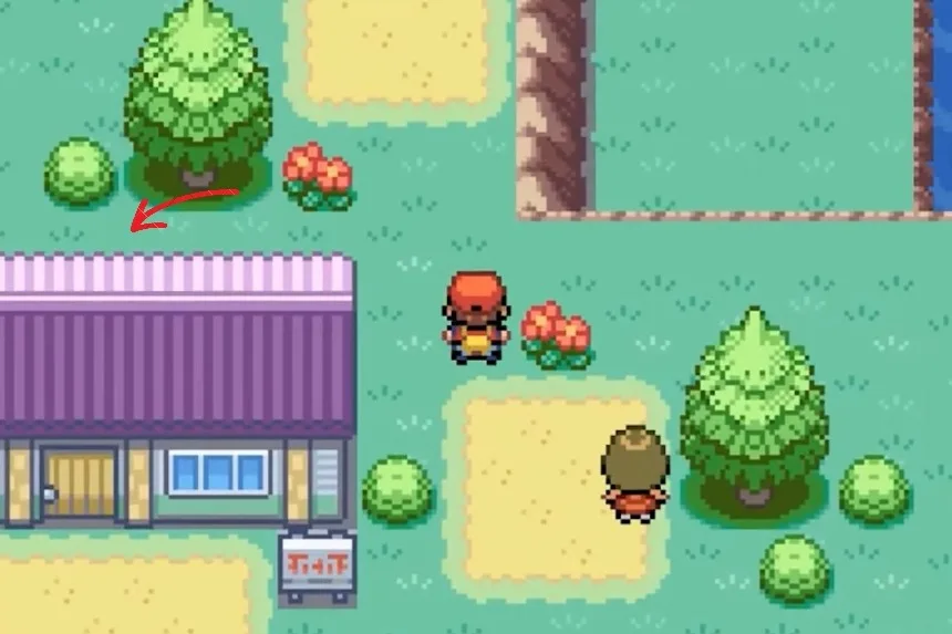 After getting the Aspear Berry, go upwards and surf through the water body to reach a new island of sorts. There, you’ll find two purple roofed-house; the Oran Berry can be found behind the house that’s on the upper side.