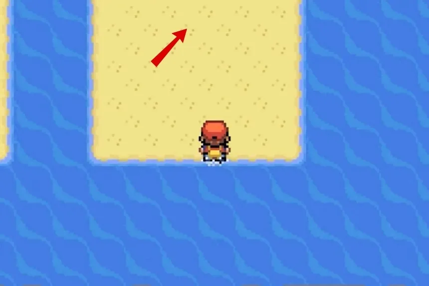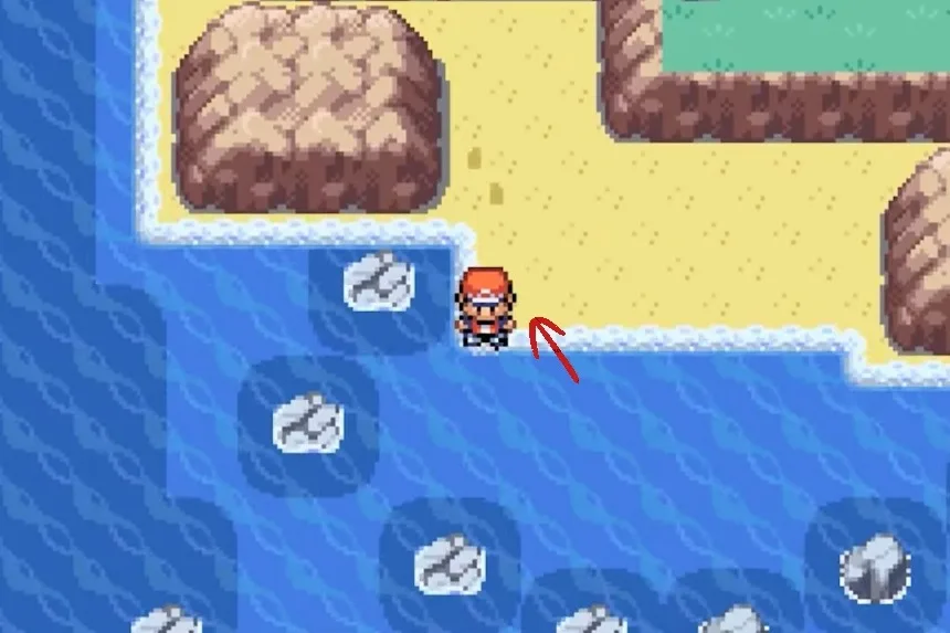 Go to the bottom of the pillar, then surf through the water body in front of you to reach a new island of sorts which you’ll find to your left. Go to the area’s bottom left corner to find yellow sand; you’ll find the Big Pearl near the edge.