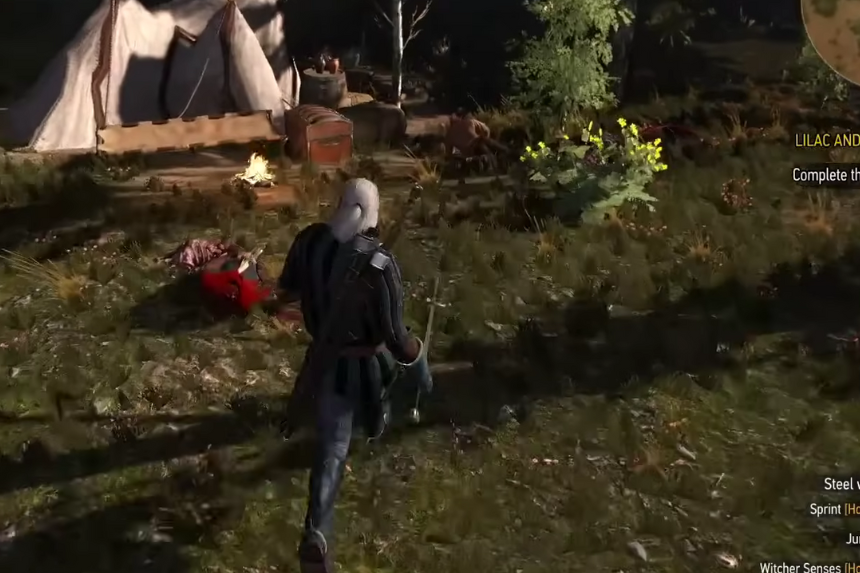 If you start in the northwest part of White Orchard, you will come across the Nilfgaardian garrison. When you reach the main entrance, turn around and run back down the path a little. Jump off the edge, and on your left, you will spot a hidden treasure chest. Inside, you can find a Dorian sword, some leather scraps, a bit of oren, and sometimes even a pair of hunting boots.