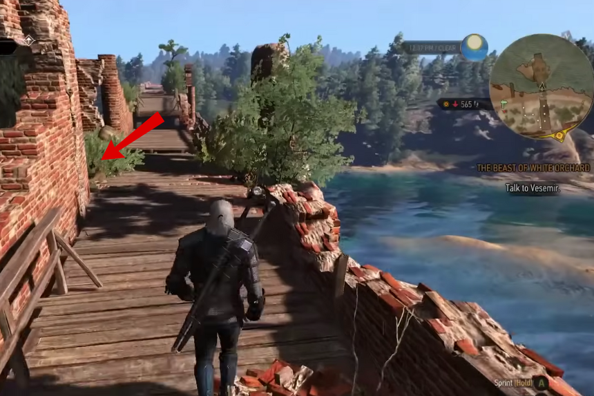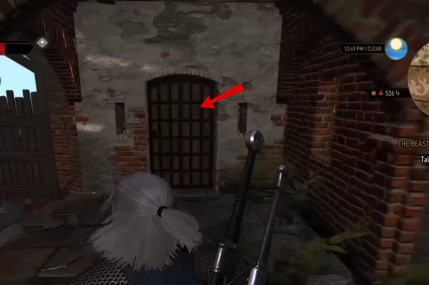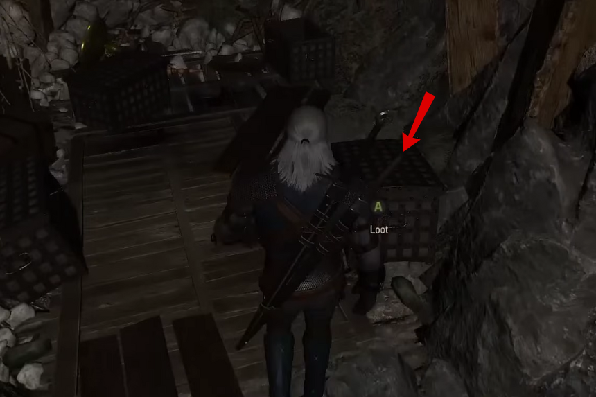 Once you enter the garrison, take a left and walk into the open area. You will notice a gate on the left side, climb over the wall there. Just ahead, you will see a damaged section of the wall. Use your Aard sign to blast it open. Inside, there’s a man’s body with a scratched key that unlocks a door on the opposite side, and you can pick up some extra loot around him, too. After grabbing everything, go back through the gate. As soon as you step outside, turn right. There’s a small storage room there. If you shut the door behind you, you can safely loot everything inside.
