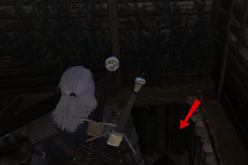 In the same area, you will come across an abandoned house. Use your Aard sign to break open the blocked passage inside, then drop down. There’s more Temerian treasure waiting for you here, including a gambeson, some crafting diagrams, oils, trousers, insignia, and a few documents.