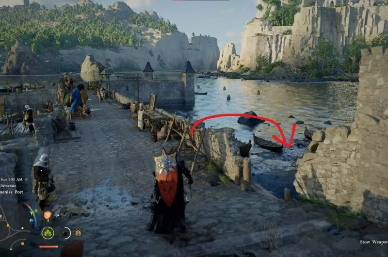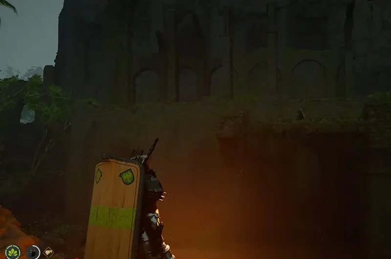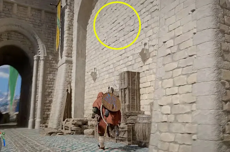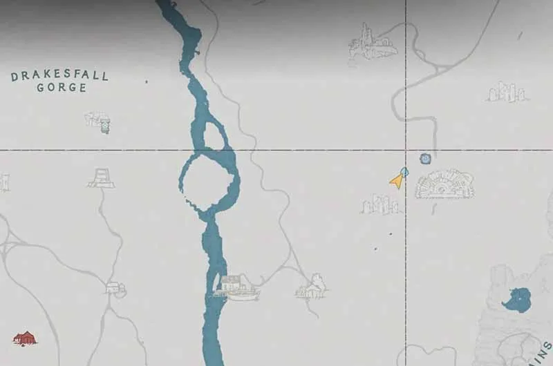 Once decoded, the treasure map points to the Bursada Castle Ruins. It’s by the Red River as shown in the above map. Go to the ruins, and make your way to a hallway with the wall puzzle that requires you to use a forced palm to flip.