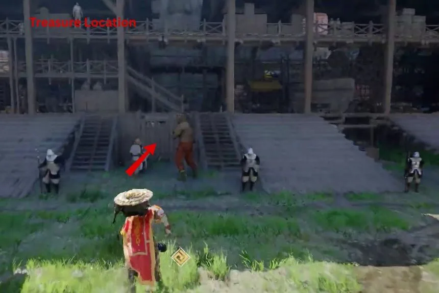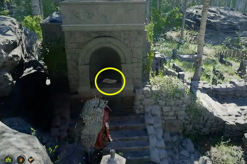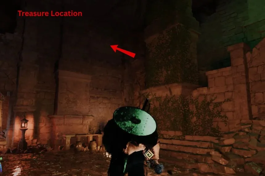 Go to the location on the above map and follow to image clues to get to the treasure. Inside the chest, you will find Wanderer of Faith’s Plate Helm.