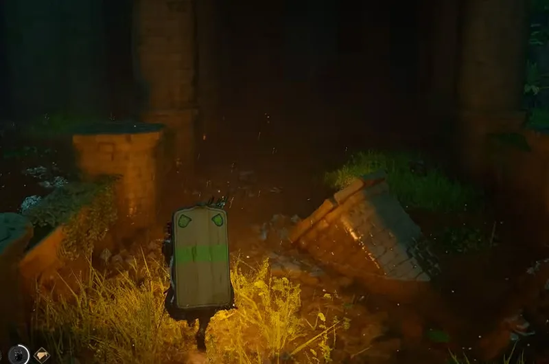 Walk forward for a short distance and then check the walls on your right. Hold up your lantern and look carefully to find a leaf symbol. To reach it, climb up the wall and use your dragger with Resist to stay attached, and then use Force Palm on the marked section so that it rotates and opens a secret chamber. Inside the hidden room, open the chest to get the Frozen Heart Plate.