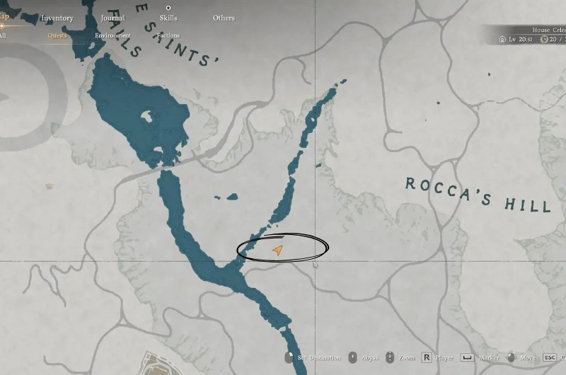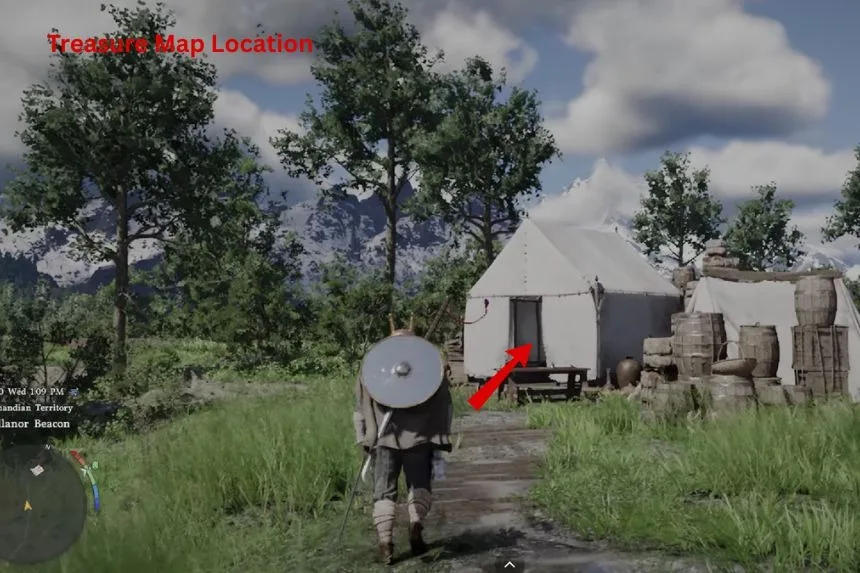 To find the hidden treasure map piece 8, you need to go to the east of Hernand, a little to the Southwest of Rocca’s Hill. The map is inside a small dilapidated house.