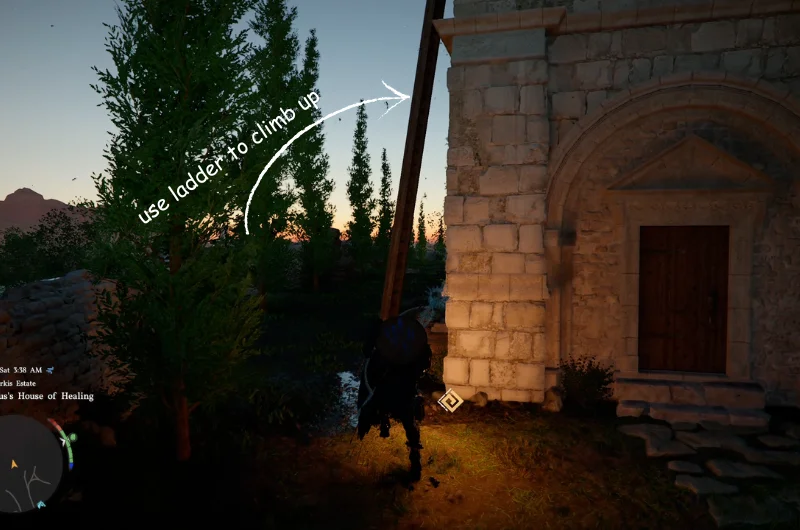 The map shows an alter which can be found at the St. Halssius’s House of Healing, east of Rocca’s Hill. When you reach St. Halssius’s House of Healing, you will notice an ladder on the left side of he entrace, climb the ladder up and go to the what looks like a bell room.