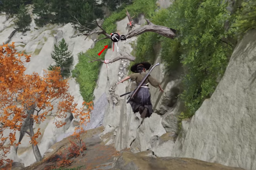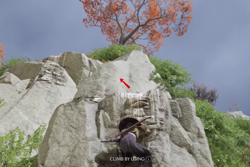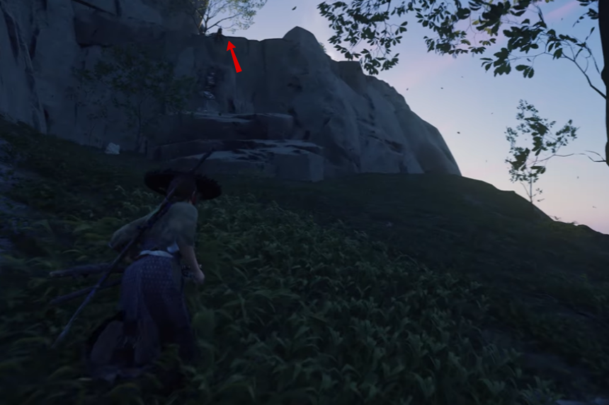 Go to the northern part of the Ishikari Plain. Here, you need to climb up the cliff. Use the tree branches to reach the top. At the top, you will find the Cloud View Hot Spring.