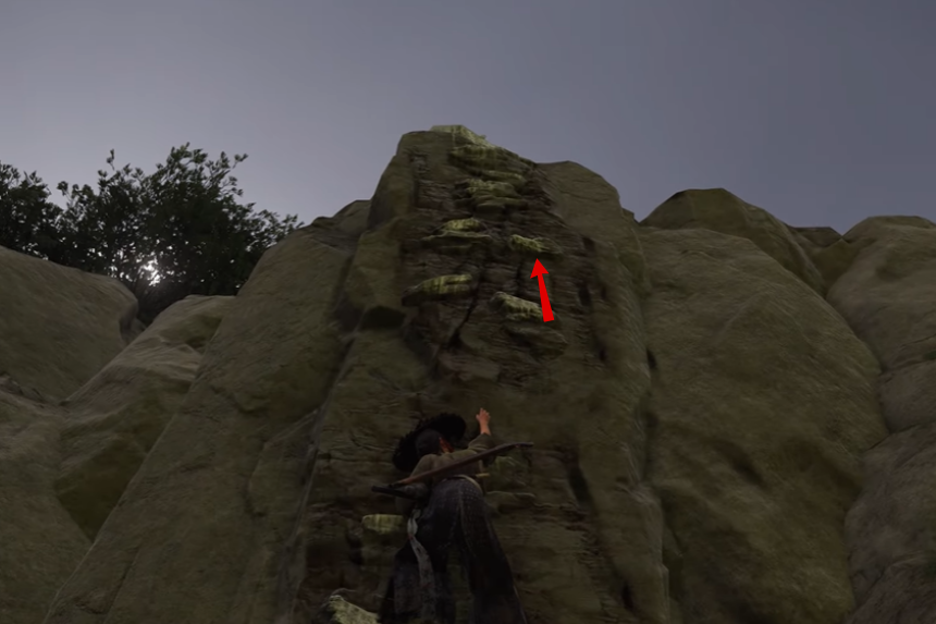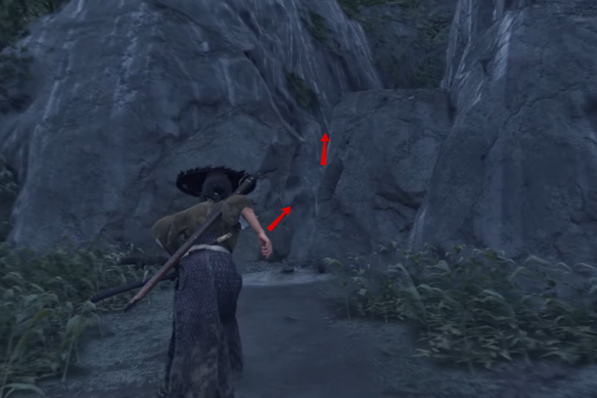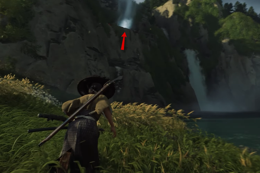 Reach the location marked on the map above. Here, you will find a mountain near the waterfall. Climb up the mountain, near the Golden Foothills. At the top of the mountain, you will find the Hidden Cliff Hot Spring.