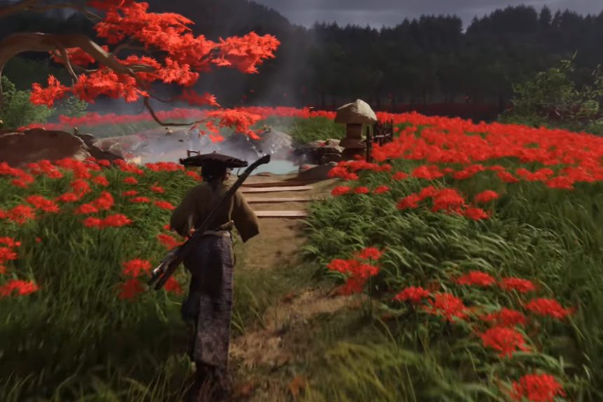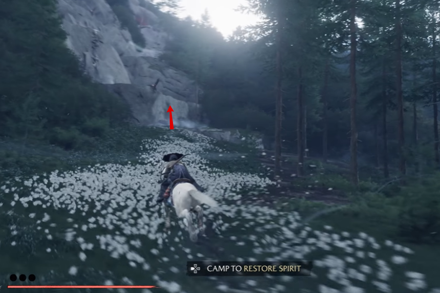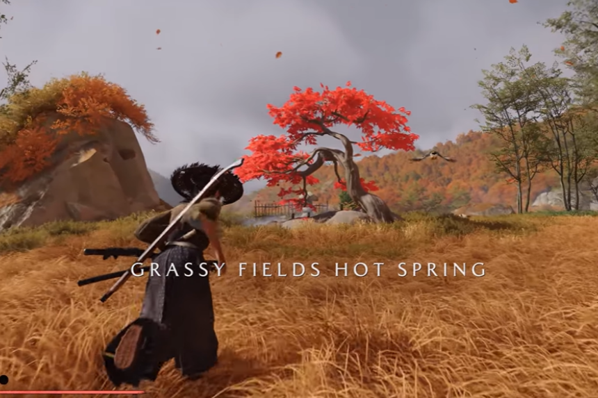 You will find this Hot Spring on the western side of the Yotei Grasslands. Reach the location marked on the map above. Here you will find a grassland with red flowers. Move forward to find the hot spring.