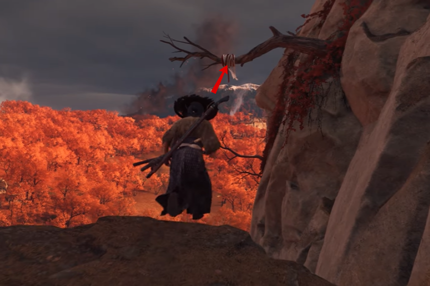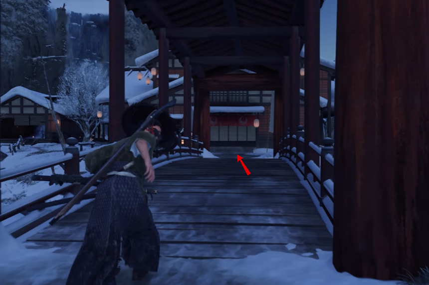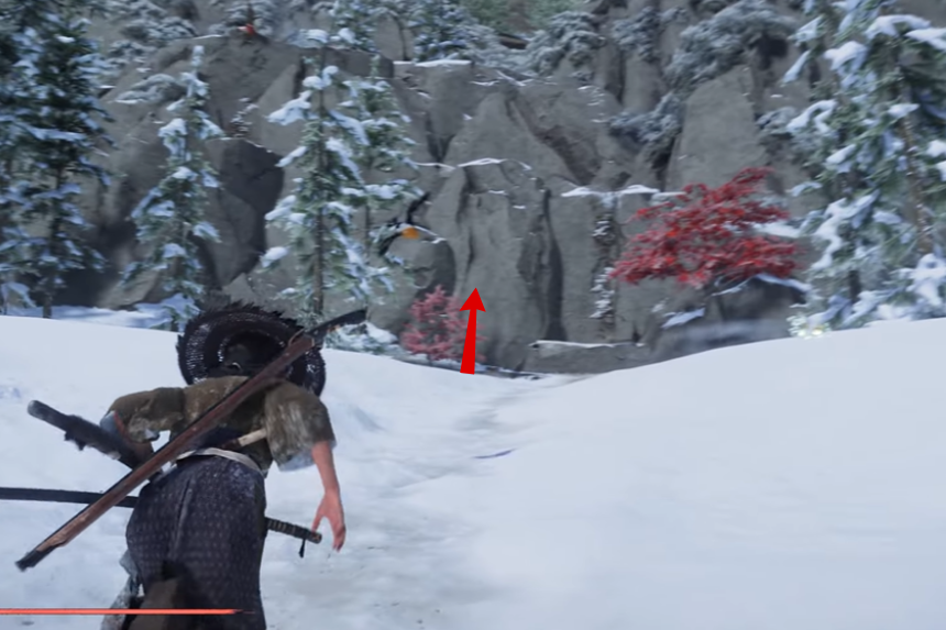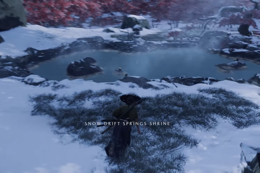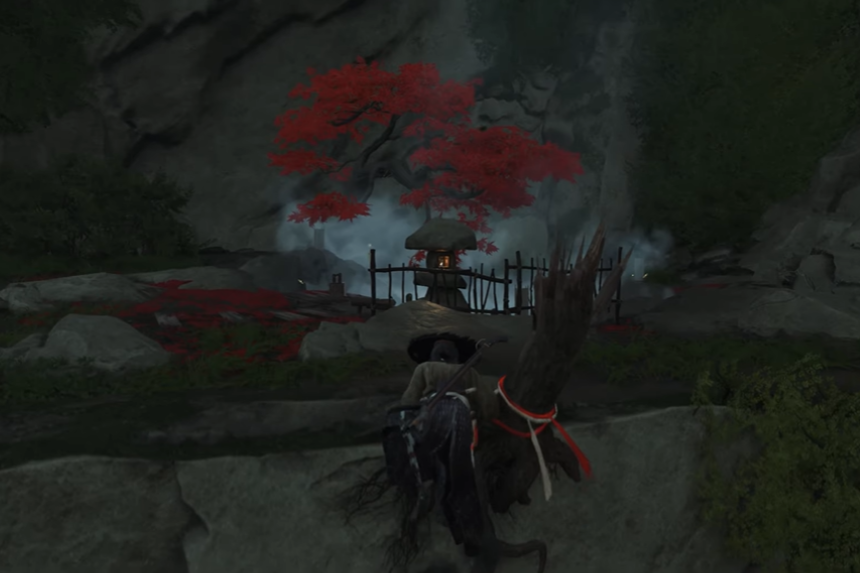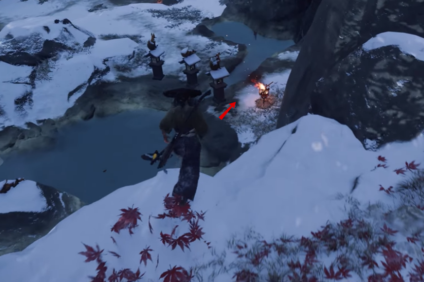 You will find this one on the west side of the Crimson Forest in Teshio Ridge. Reach the marked location. Go down the cliff to find another mountain, just near the fire. Climb up the mountain to reach the Snow Drift Springs Shrine.
