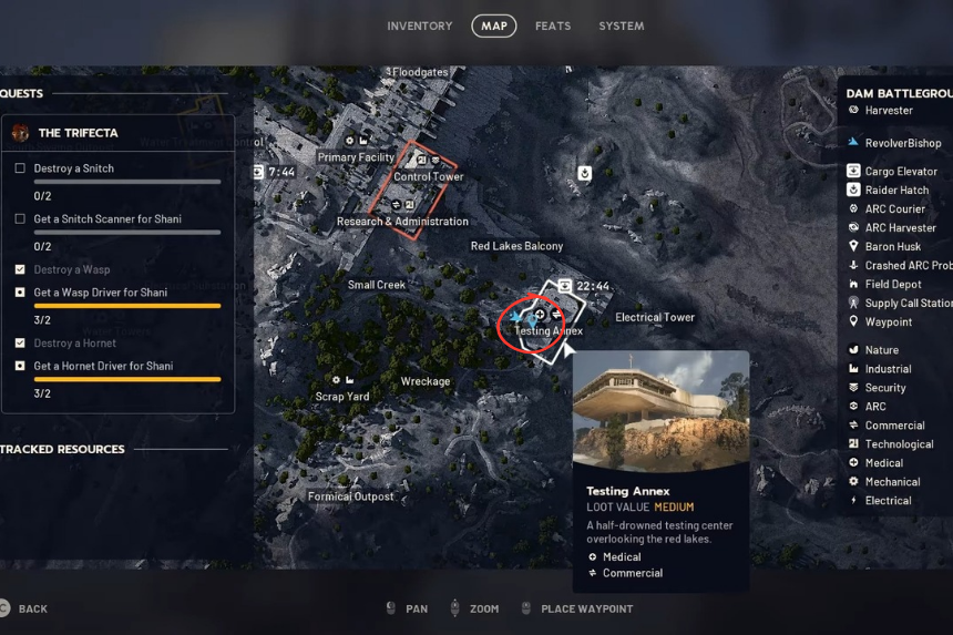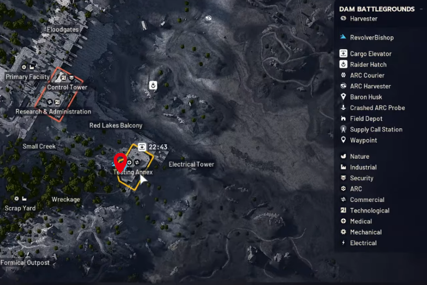 Once you have the key, head to the southeastern corner of the Dam map; that’s where the Testing Annex sits. Enter through the main door and keep moving straight. Eventually, you will reach a large steel door with a panel next to it. You will also get the Dam Testing Annex Key from the A Lay of the Land quest.