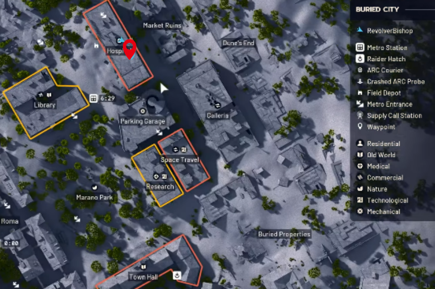 You can find the Buried City Hospital Key in the Ruby Residence building on the Dam map. While key drops in ARC Raiders are random, this is one of the best spots to start searching. If you don’t find it there, head over to the second floor of the Research and Administration building. There’s also a good chance the key will spawn somewhere in that area.