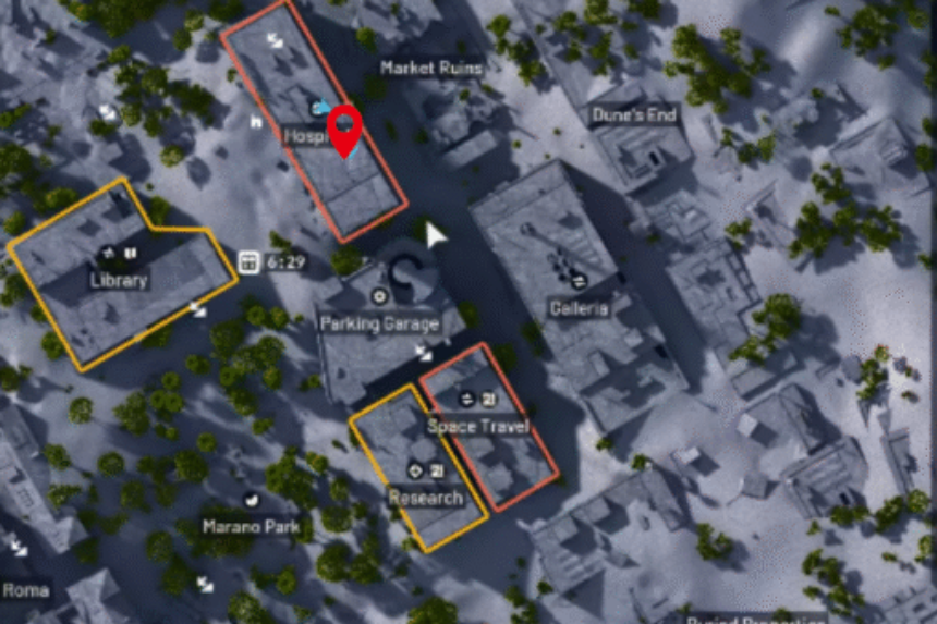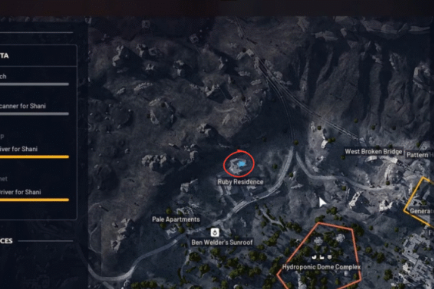 You won’t find this key in the Spaceport itself; it actually spawns on the Dam Battleground map and in random locations. The best place to look is inside the Ruby Residence building. The key appears in random spots, but this building gives you the highest chance of finding it. You can find Ruby Residence on the northeastern side of the map, close to the Hydroponic Dome Complex. If you don’t spot it there, try checking other locations like the Research and Administration building.