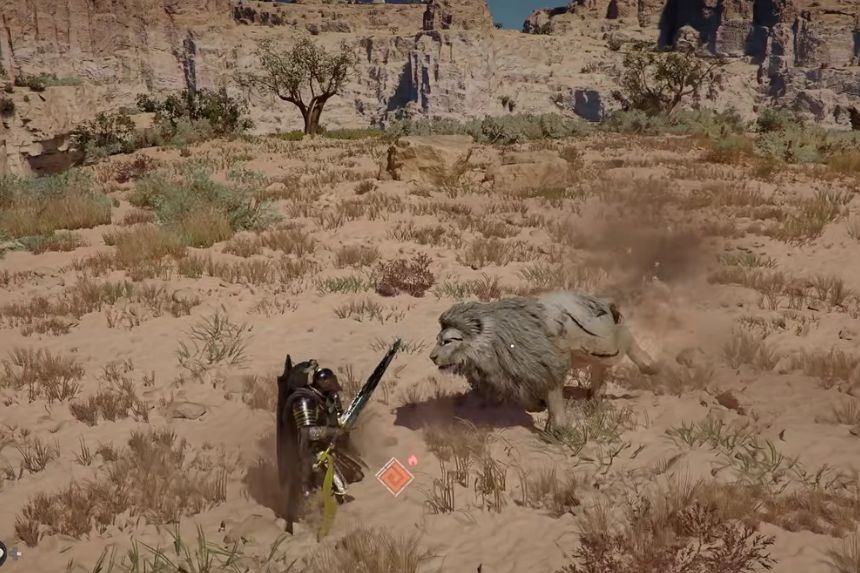 The White Lion can be found in the northeastern edge of the Crimson Desert, in the bottom right of the desert area below Vanier. It is in a late-game area. Defeating the White Lion rewards players with the White Lion Necklace.
