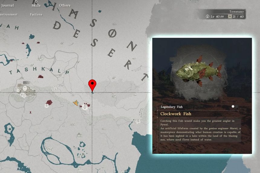 The Clockwork Fish can be found by going to a small stream southeast of Tashkalp. When you arrive at the location, look around until you see a small stream running through the ground, then go fishing there. That is where the Clockwork Fish can be found.