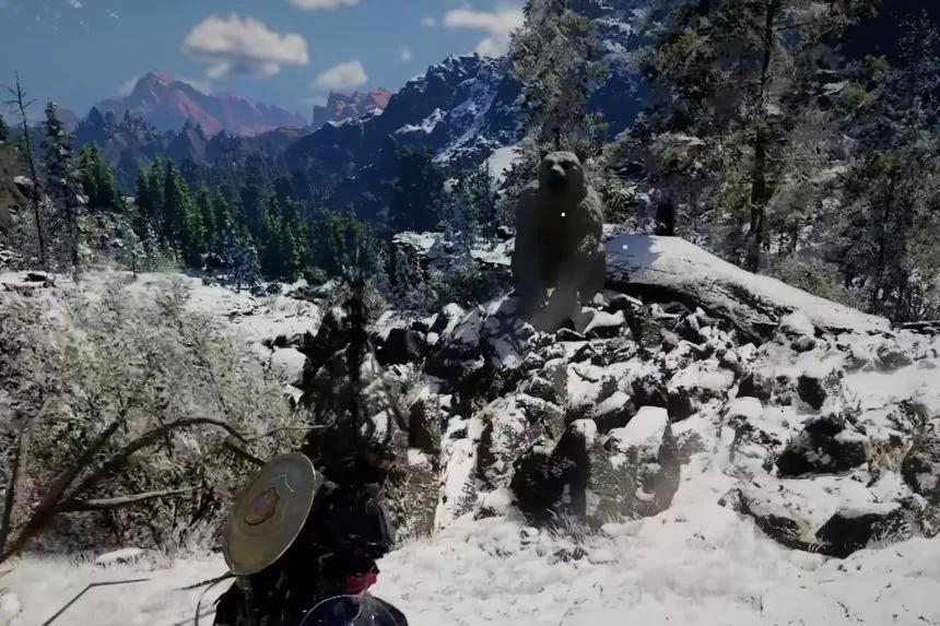 When you arrive, you will see the White Bear, which is usually accompanied by some cubs. As soon as you get close, the bear will attack right away, so be prepared to fight it. First, kill the bear, and then make sure to skin it. This is important because it will give you the White Bear Claws, which are required to get the mount.
